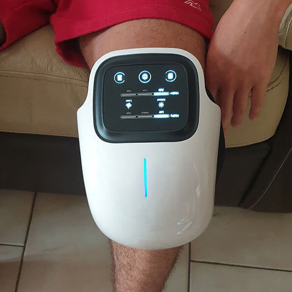 The Trurelia® Knee Massager uses gentle air compression to hug the knee, improve stability, and reduce pressure on irritated tissue.