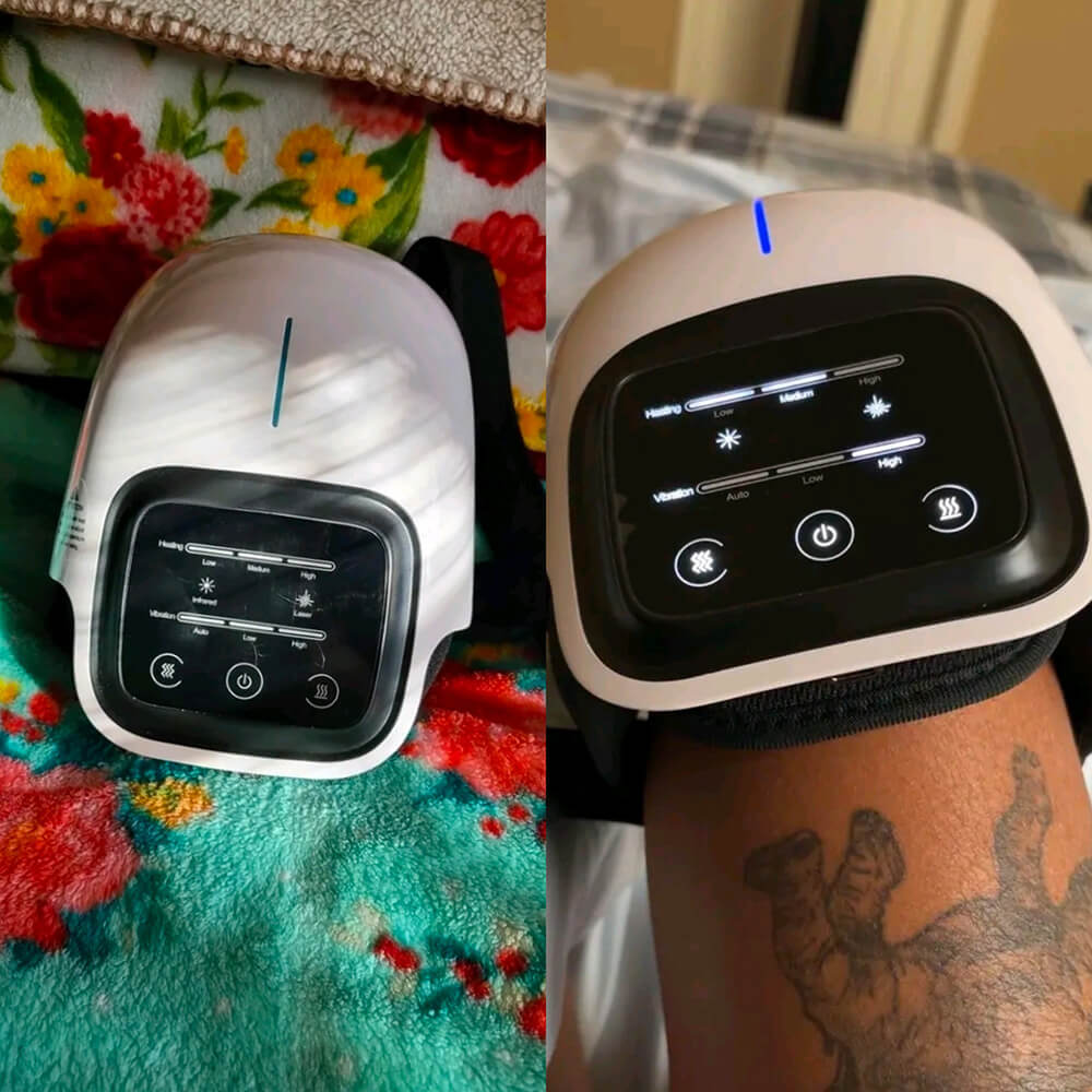 Vibration and compression target the kneecap and patellar tendon to release pressure, improve alignment, and bring relief after long activity.