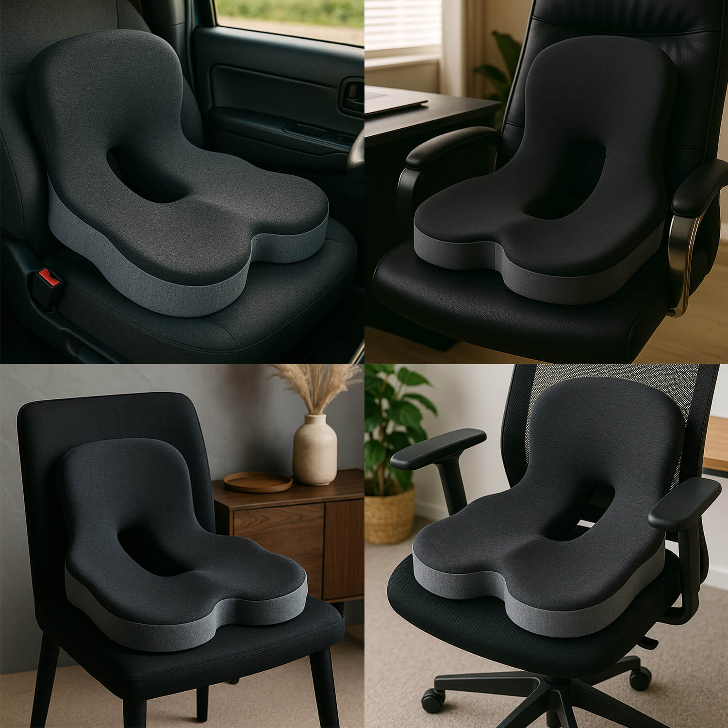 The cushion is ideal for anyone who sits for long periods, office workers, remote employees, truck drivers, gamers, and frequent travelers. It supports the spine, relieves tailbone pressure, and improves overall sitting comfort.